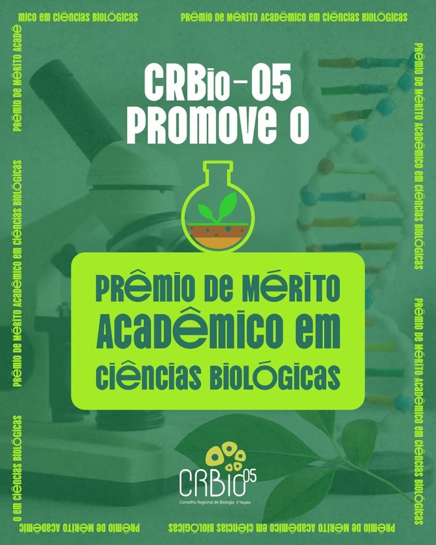 O Conselho Regional de Biologia da 5ª Região (CRBio-05) publicou a Portaria CRBio-05 nº 24/2025, para promover o Prêmio CRBio-05 de Mérito Acadêmico em Ciências Biológicas.